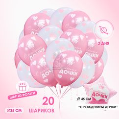Шары "С рождением дочки 20 шт + фольга " Бесплатная доставка АРТ - 18-030 Набор из 20 шаров. Время полета: 2 дня