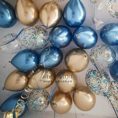 Шары "Темно- синий и золотистый хром" 15 шт Бесплатная доставка АРТ - 14-109 Размер: 30-35 см. Время полета: 2 дня